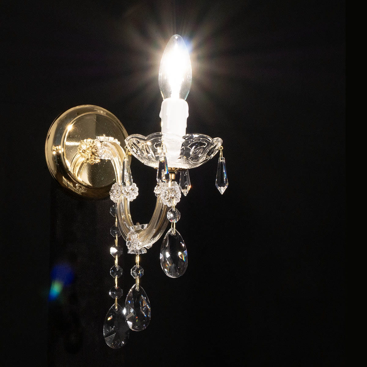Kinkiet Kryształowy 1-ramienny – Mosiężny Korpus, Wysoka Jakość