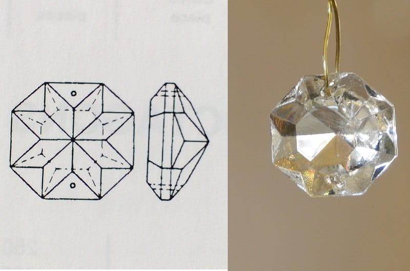 Szklana zawieszka ośmiokąt oktagon K4502-40 mm